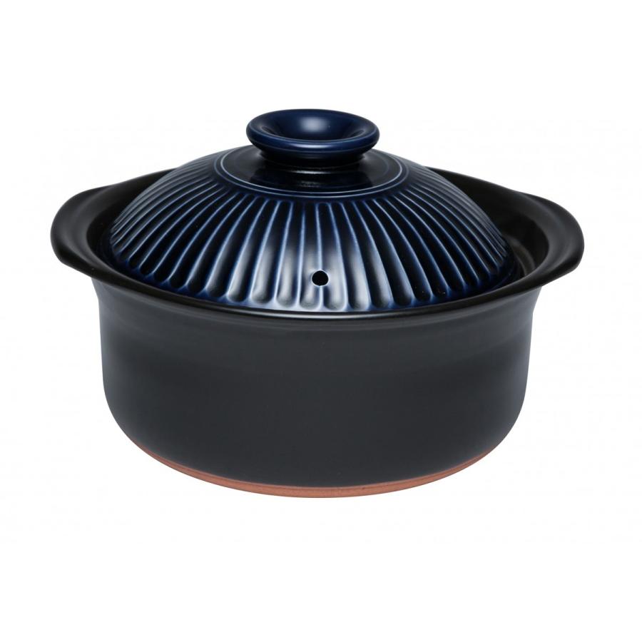 ih菊花ごはん鍋2合炊きルリ釉 土鍋 Ih対応 三重県 萬古焼 おいしい
