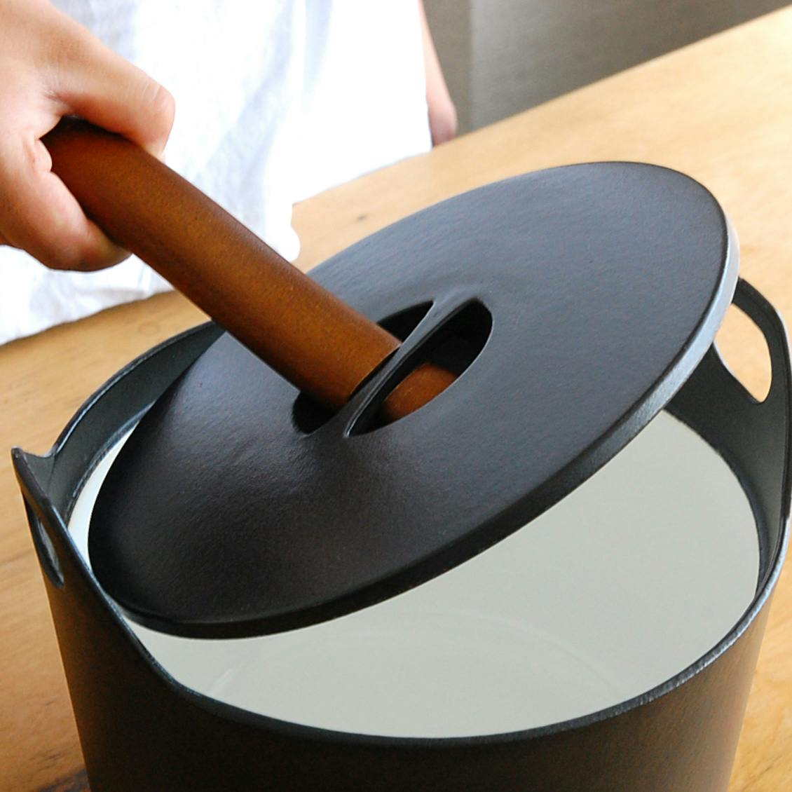 木の取っ手の深型ホーロー鍋 コルビジェ