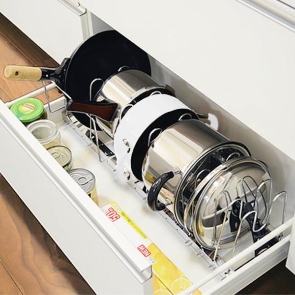 伸縮式鍋 フライパン 収納ラック スッキリ整理 フライパンラック 鍋
