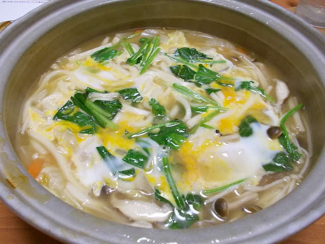 土鍋でうどん 鍋の残りで味噌煮込みうどん レシピ 作り方 By 玻瑠佳 Haruka クックパッド