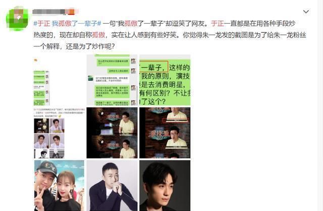 于正拿朱一龙做话题被撕 甩锅节目组声称孤傲一生
